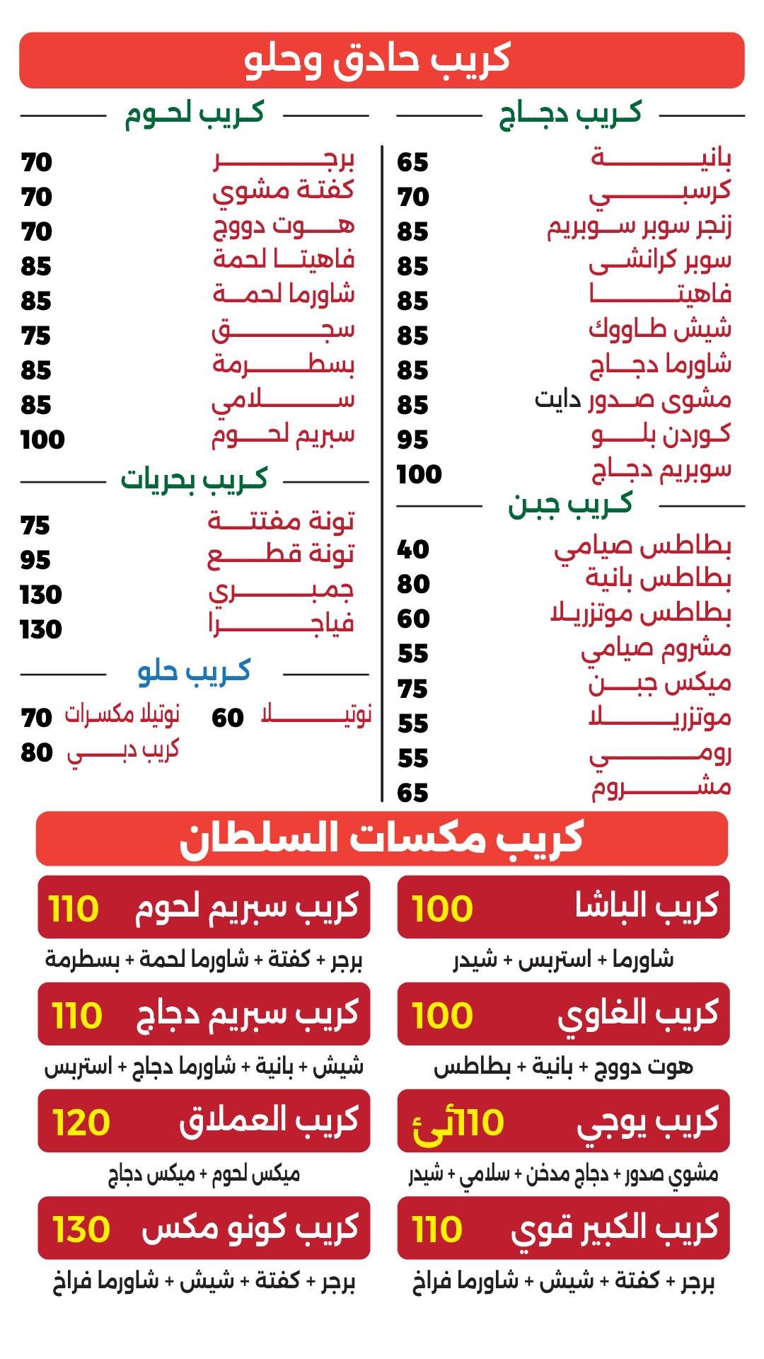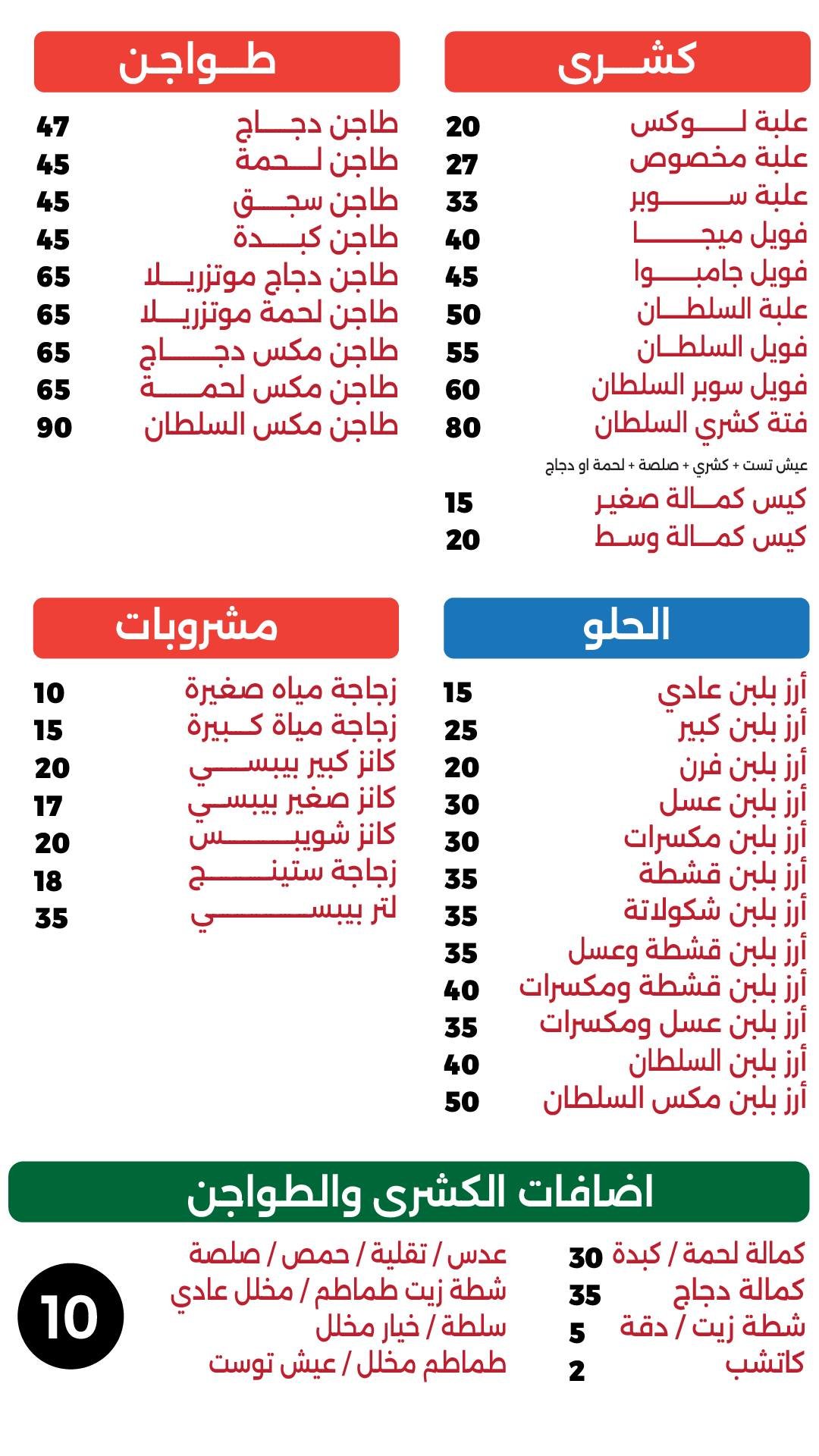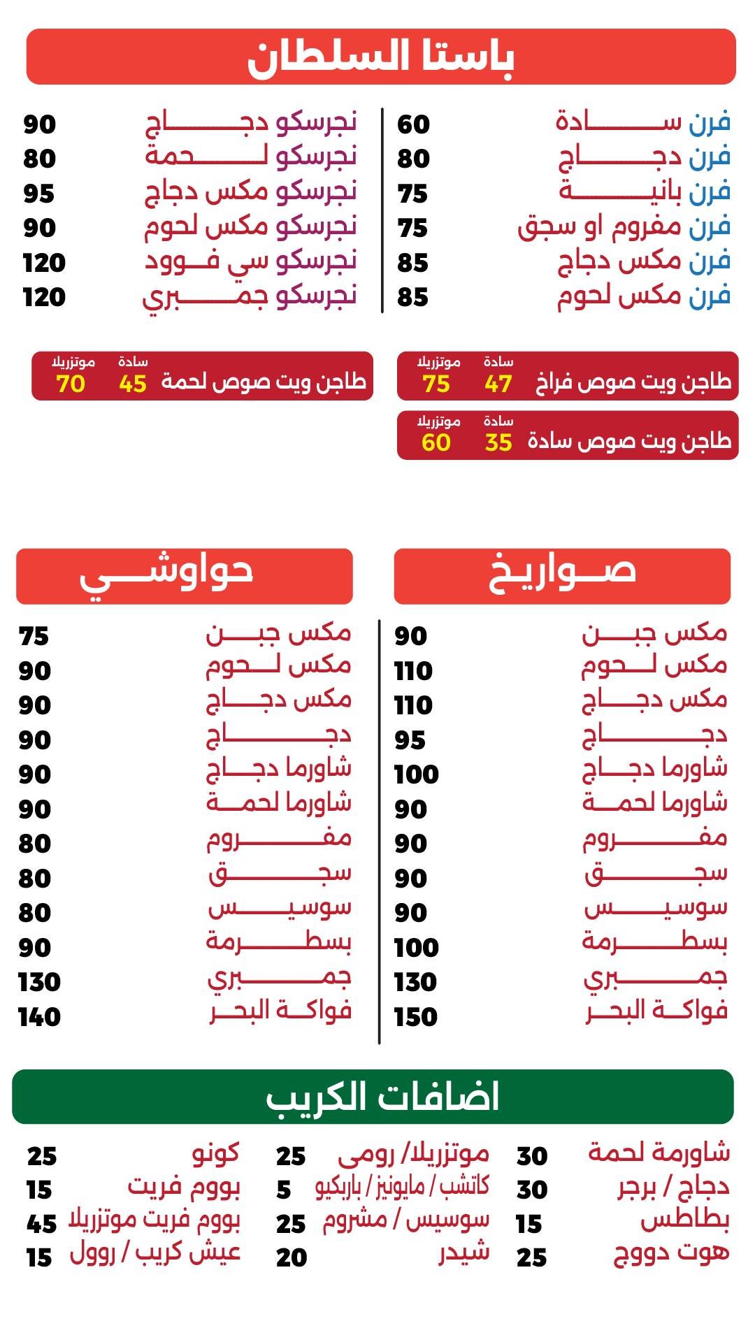 منيو السلطان فروع السلطان فرع الحصري شارع المكتبة - بجوار البنك الاهلي فرع الياسمين سنتر الياسمين - خلف الملاهي 01062424266 01117274999 فرع دولسي شـ دولسي - المجاورة الثانية 01068515542 01110627570